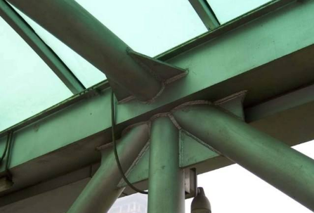 (2)直接相貫節點.焊接鋼管的連接方式,通常需要各種桿件進行交匯.在對各種連接桿件的設計和制作中,會加大設計和施工工作量,還會增加鋼材的用量,且連接件在節點處不連續,對節點的剛度和鋼結構的美觀性產生一定的影響.利用直接相貫節點進行設計,可以實現在施工過程中,不使用任何的連接件,能夠節省鋼材,降低成本,降低鋼結構的造價.